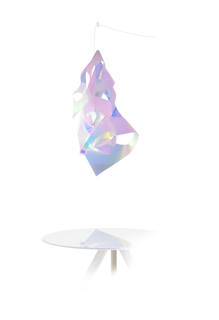 Ethereal Ethereal Lamp celebrates light throughout day and night. Its iridiscent surface reflects and colours the daylight. At night it lights up creating a cozy ambient with a subtle touch of colour.2020Designed and made in Germany